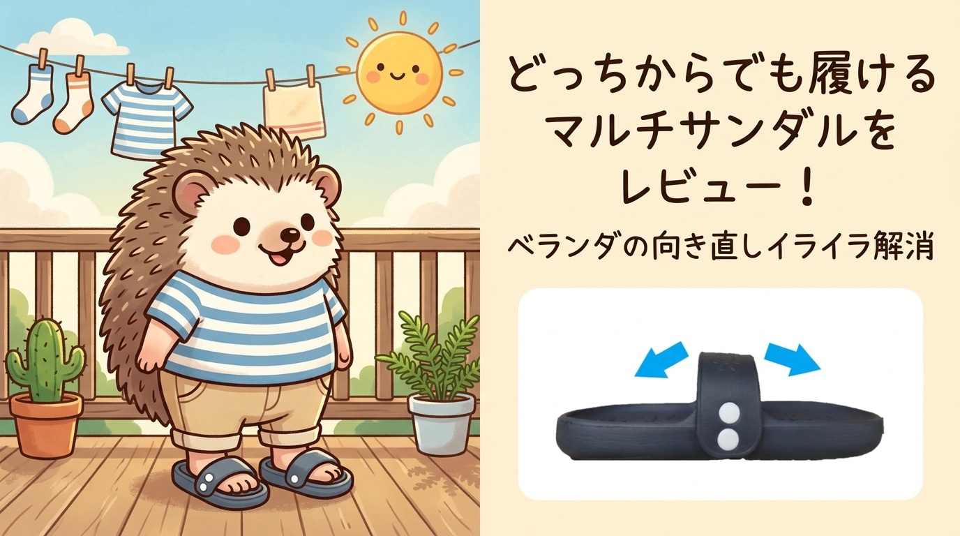 【ミツギロン】どっちからでも履けるマルチサンダルをレビュー!ベランダの向き直しイライラ解消