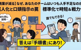 お仕事関連(進め方等) 【残業が減る】なぜ、あなたのチームはいつも人手不足なのか?答えは「手順書」にあった 「教えるのが面倒…」と感じていませんか?その場しのぎの口頭指示が、実は残業の原因です。仕事がデキる人は知っている、8割の完成度で始める「育てる手順書」の作り方を解説。属人化を防ぎ、チーム全体の時間を生み出す方法とは!新人教育を続けたわっしゃんがわかりやすくゆる~く解説して行きたいと思います。 2023.01.09 お仕事関連(進め方等)